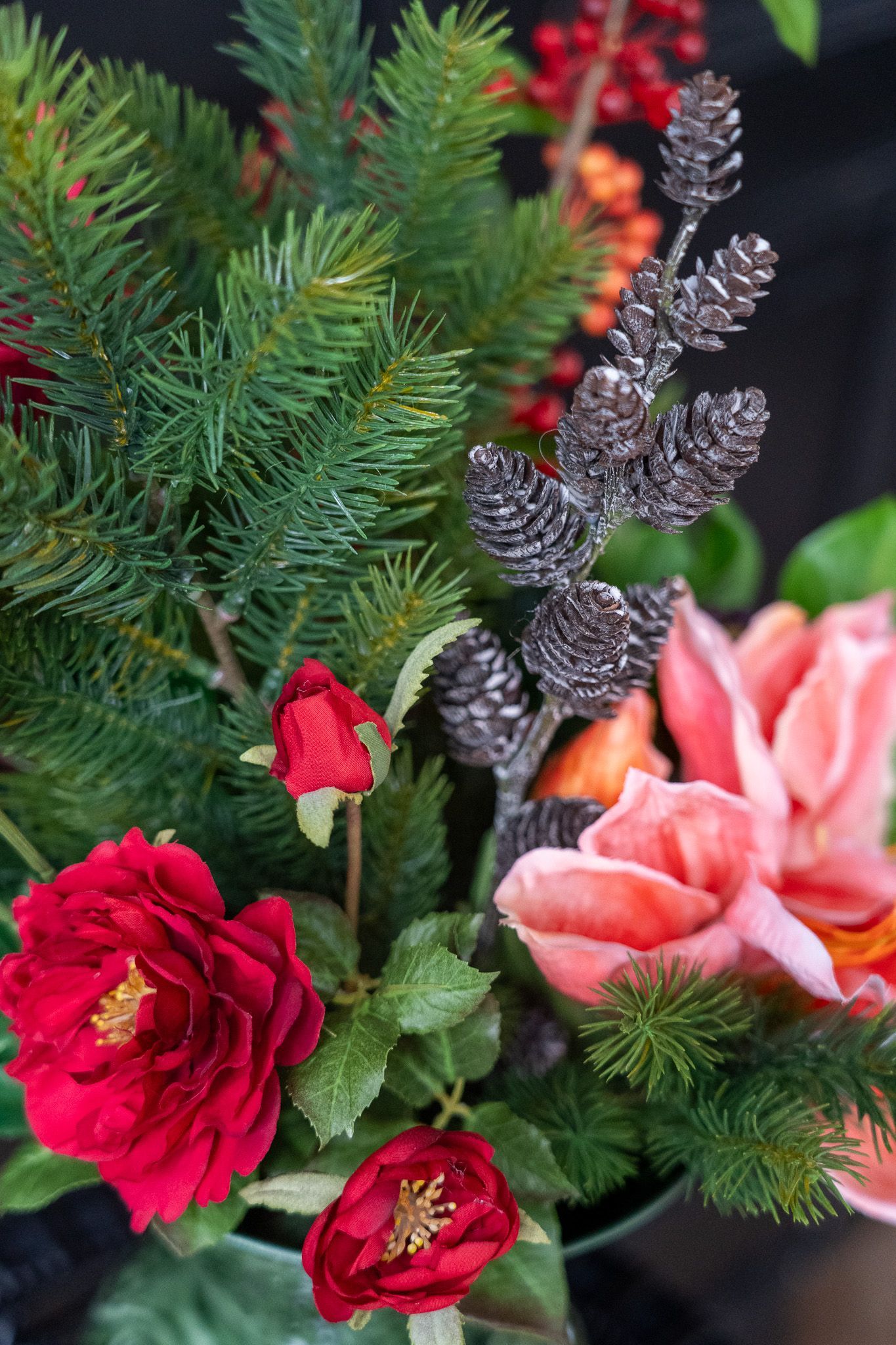 Boeket Merry is het charmante, kleine zusje van Boeket Noëlle. Dit zijden boeket brengt op een subtiele manier kleur en kerstsfeer in huis. Met dezelfde prachtige feestelijke tinten als haar grotere zus, steelt Merry de show op elke tafel.